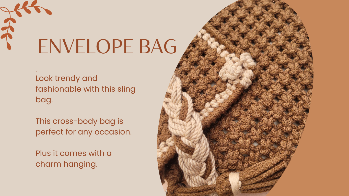 | Envelope BAG FOR WOMEN AND GIRLS: Look trendy and fashionable by carrying this bag. Made with macrame, with a 1.5 kg of capacity, this purse for women and girls is lightweight and easy to carry. This cross-body bag is perfect for any outfit and occasion.